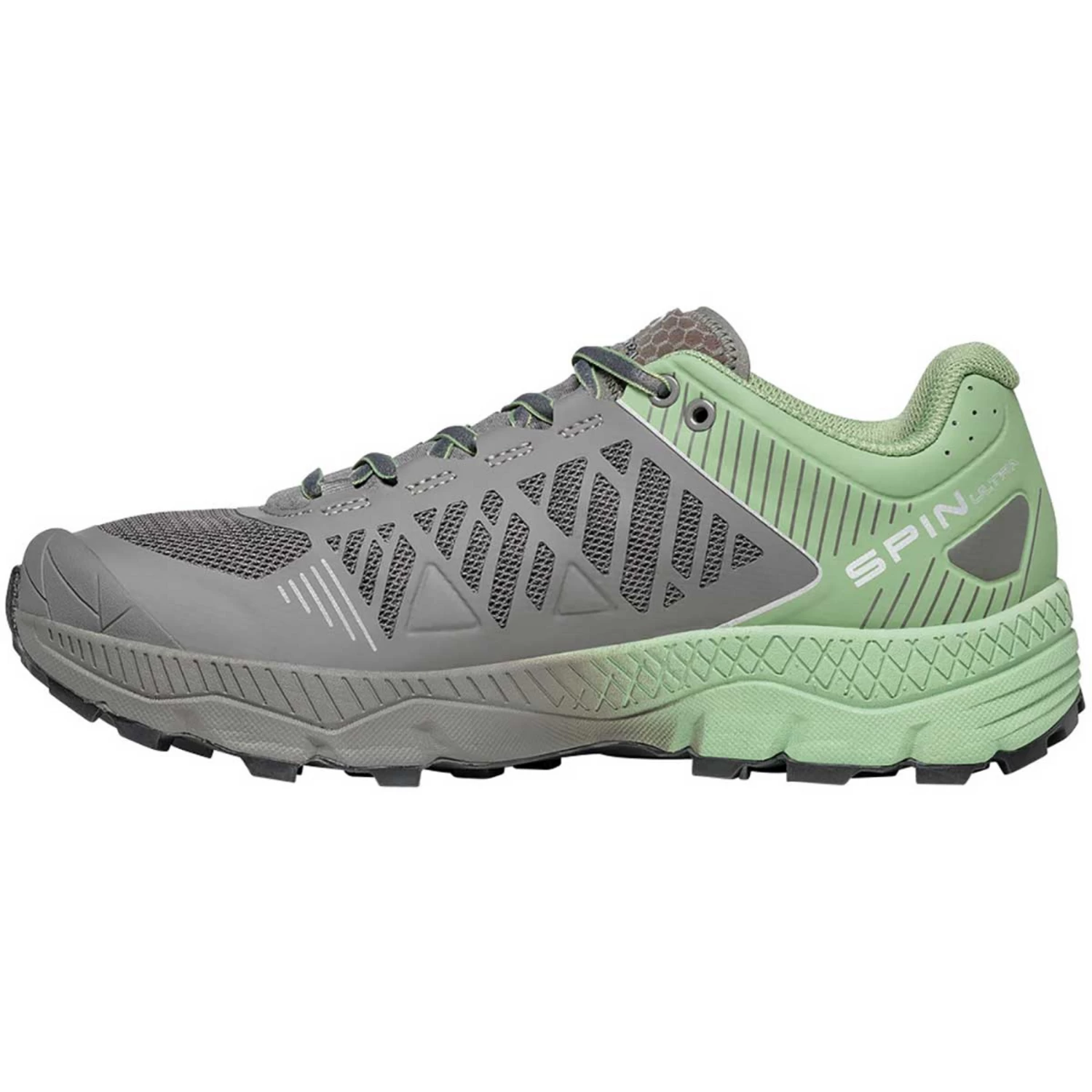 <p>Scarpa’s Spin Ultra shoes are superbly cushioned trail running shoes for ultra distances that are just as suitable for ambitious hobby runners as they are for top runners.</p><p>The upper is made of breathable mesh fabric, reinforced with laminated PU covers, and surrounds the foot with sock-like precision. This provides support without pressure points and ensures excellent wearing comfort over long distances. The logo in the heel area is reflective, for better visibility in running sequences with public transport. At the toe, a toe cap protects the shoe and foot against unpleasant rock contact. </p><p>Practical detail: The ends of the laces can be stowed in the tongue pocket and are thus protected against unintentional opening.</p><p>The heart of the durable off-road shoe for ladies is the sole construction. Various strategically placed EVA inserts with different density in the midsole provide excellent cushioning, a special insert controls the torsional stiffness for maximum performance on technical trails. </p><p>The Vibram® sole of the Spin Ultra shoes, with its specifically designed tread pattern and Megagrip rubber compound, is the surface of contact with the ground and beyond doubt in terms of grip and traction.</p>
